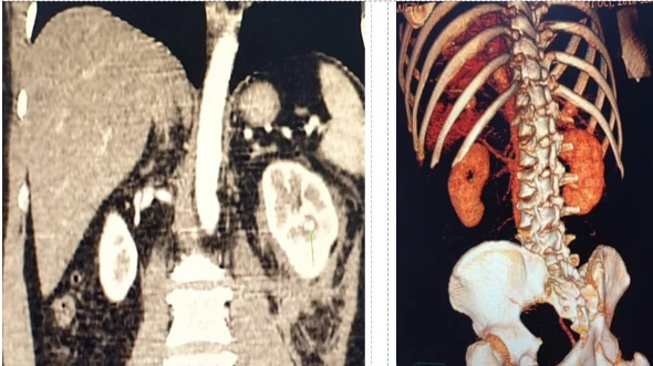 Trước đó, ông NVQ (57 tuổi) được một BV địa phương chuyển tới BV Trưng Vương trong tình trạng đau nhiều vùng hông trái, tiểu ra máu.