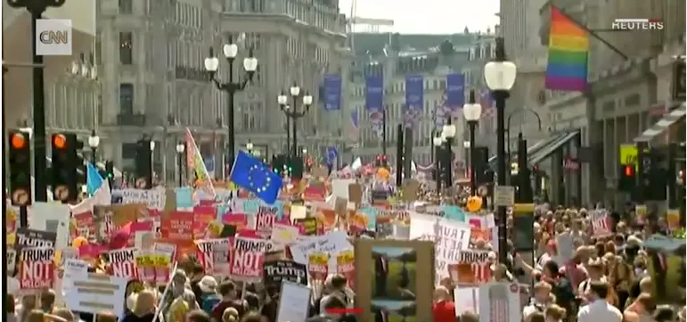 Biểu tình diễn ra trên khắp nước Anh phản đối chuyến thăm của ông Trump vào năm 2018. Ảnh: CNN