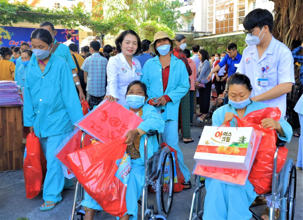 Những bênh nhân khó khăn trong việc di chuyển liền được các nhân viên y tế nhiệt tình giúp đỡ bằng xe lăn, được lãnh đạo bệnh viện thăm hỏi động viên chúc Tết…