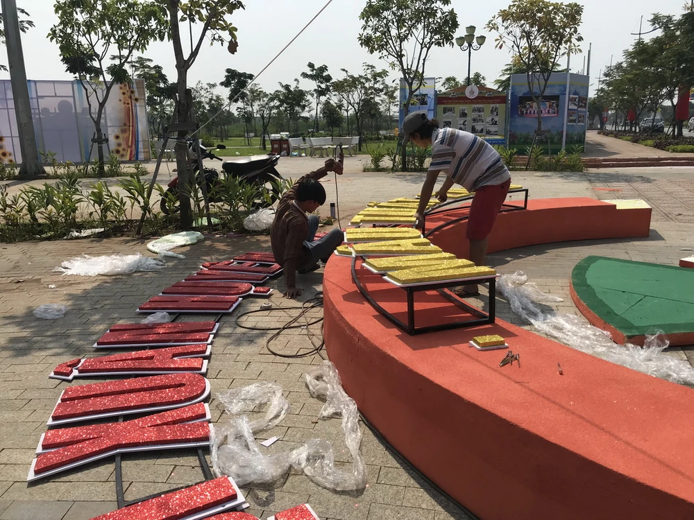 Hiện nay, huyện Bình Chánh đang khẩn trương thi công để hoàn thành đường hoa vào ngày 24 tháng Chạp để kịp phục vụ cho nhu cầu mua sắm của người dân.