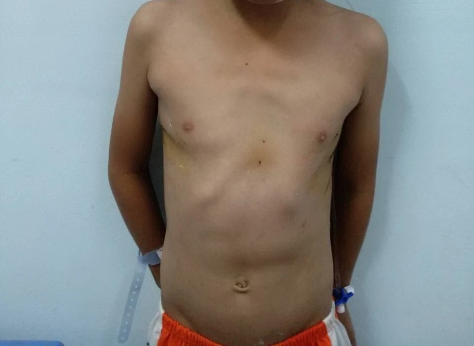 Hình ảnh ngực lõm của bé trai trước khi phẫu thuật. Ảnh: BVCC