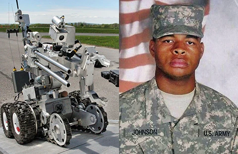 Để tiêu diệt hung thủ Micah Johnson ẩn nấp trong một tòa nhà, sau nhiều giờ bao vây, lần đầu tiên cảnh sát đã sử dụng người máy được điều khiển từ xa có mang bom.