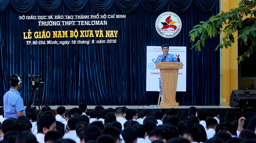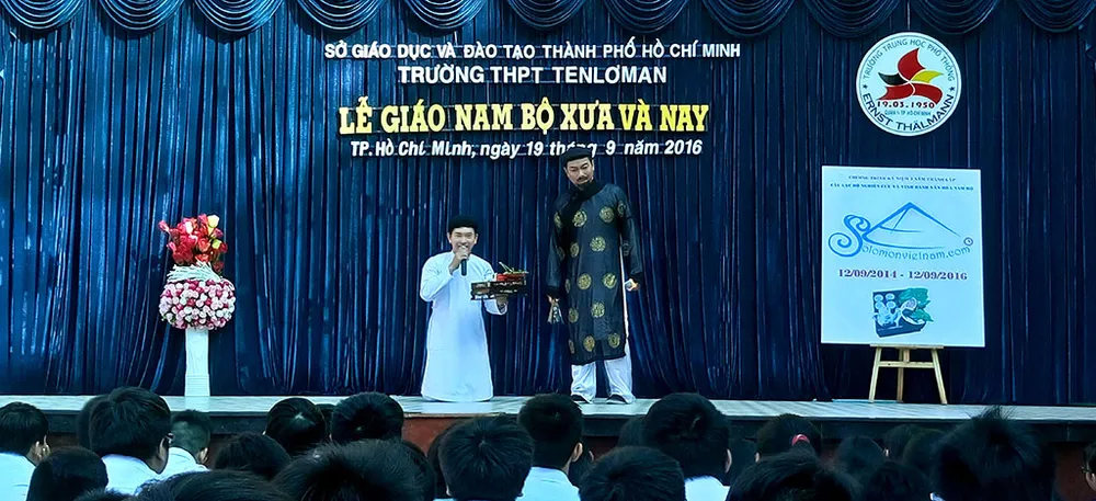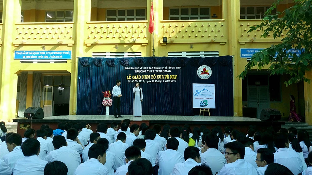 Sáng nay (19-9), các em học sinh của Trường THPT Tenlơman (8 Trần Hưng Đạo, quận 1, TP.HCM) đã có buổi tìm hiểu về lễ giáo Nam Bộ xưa và nay ngay tại ngôi trường của mình.