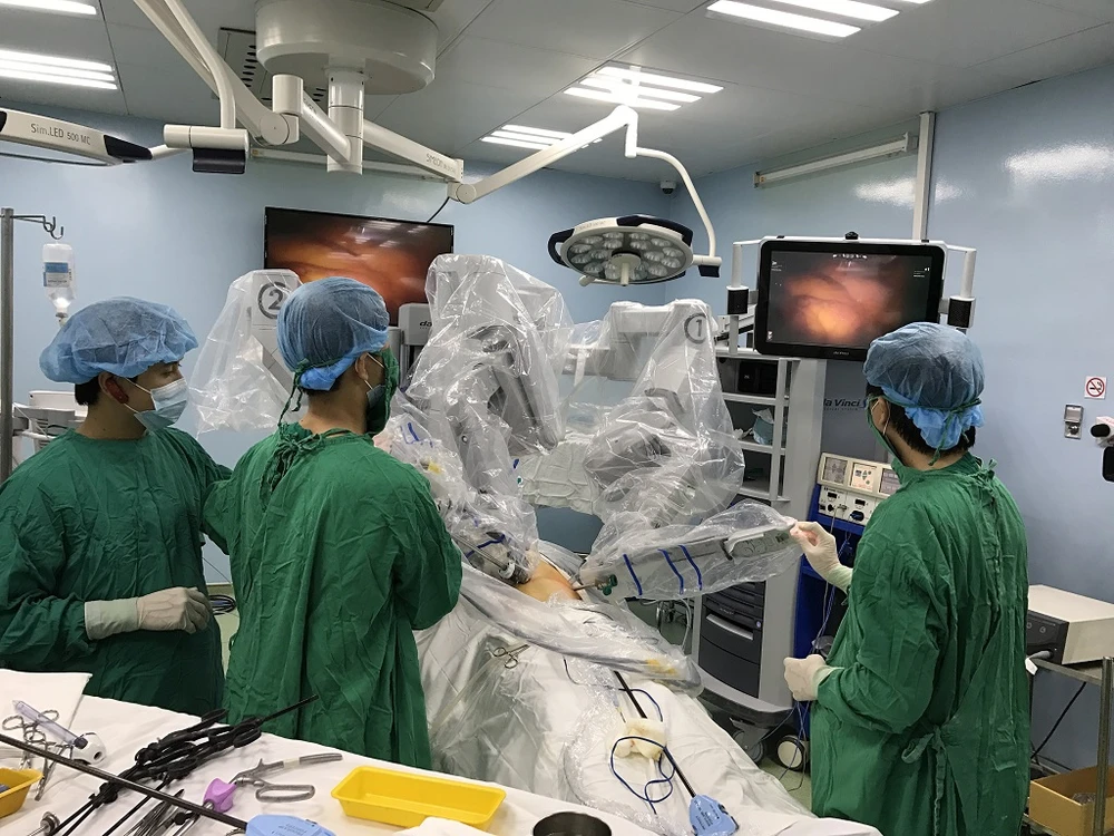 Ngày 20-3, BS CK2 Hoàng Vĩnh Chúc, Trưởng khoa Ngoại tiêu hóa, BV Bình Dân TP.HCM, cho biết sáng cùng ngày, BV đã sử dụng kỹ thuật robot hiện đại, lần đầu tiên phẫu thuật ung thư dạ dày cho bệnh nhân.