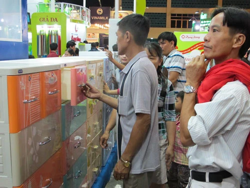 Để tiếp cận người tiêu dùng, nhiều doanh nghiệp giảm giá hàng khuyến mãi tại hội chợ. Ảnh minh họa