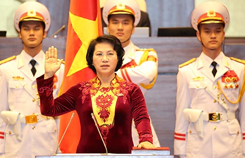 Bà Nguyễn Thị Kim Ngân tuyên thệ nhậm chức chủ tịch Quốc hội, chủ tịch Hội đồng bầu cử quốc gia khóa XIII . Ảnh: TTXVN
