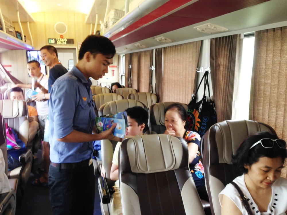 Hành khách nhận sổ tay du lịch miễn phí.