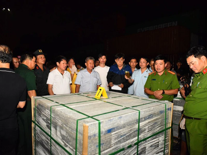 Qua thời gian đeo bám, vào khoảng 22 giờ ngày 18-7, ban chuyên án phát hiện nhóm nghi phạm vận chuyển ma túy được giấu trong các khối đá từ một kho ở phường Linh Đông, quận Thủ Đức bằng container.
