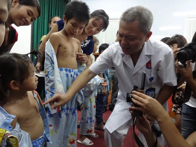 Theo ông Thành, với phương pháp phẫu thuật ít xâm lấn các bác sĩ chỉ mở một phần xương ức phía thấp, đường rạch da ngắn khoảng 6cm với người lớn, 3 - 4cm với trẻ nhỏ với sự trợ giúp của các phương tiện trong phẫu thuật nội soi.