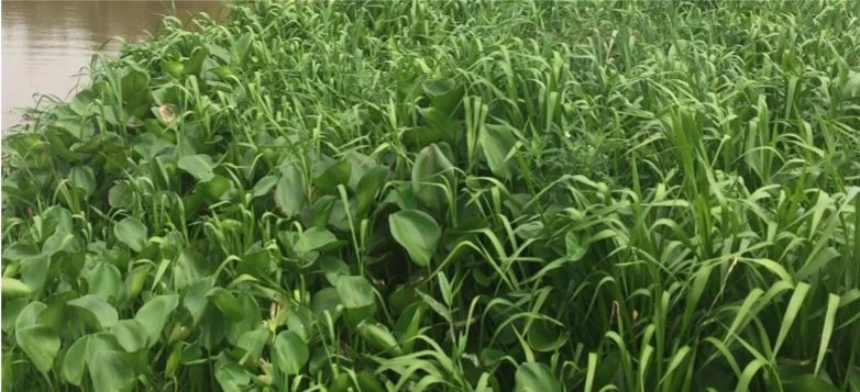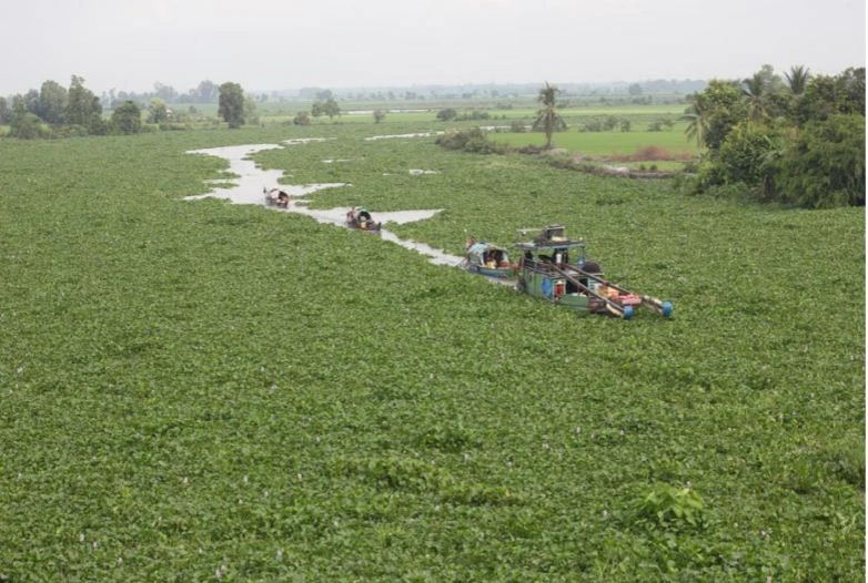 Lục bình dày đặc trên sông Vàm Cỏ ,gây cản trở giao thông