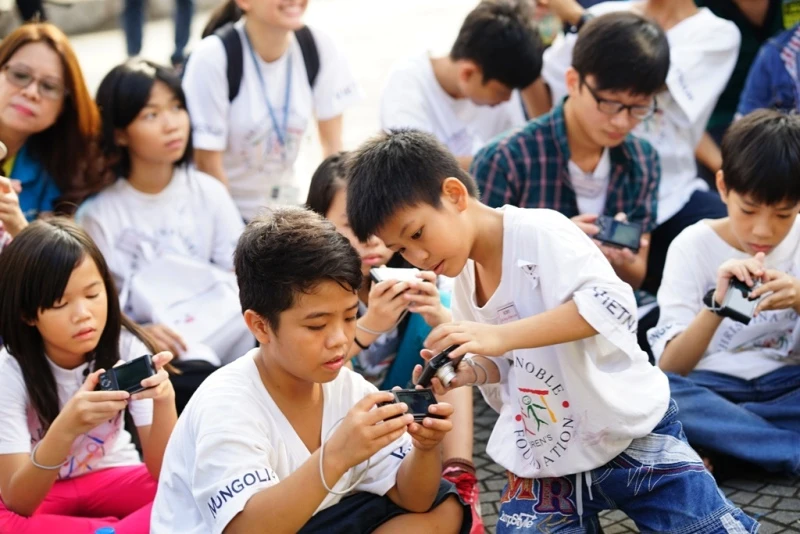 Các em nhỏ được học cách sử dụng máy ảnh để chụp lại những khoảnh khắc sống động của cuộc sống quanh mình