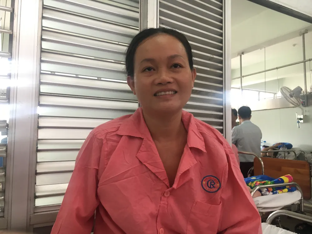 Nằm tại Khoa ngoại lồng ngực, chị Nhi đã nở nụ cười và cảm thấy khỏe khoắn, ăn uống được. Chị Nhi kể lại cách đây hai năm, chị bị sụp mi mắt, sau đó tay chân yếu, không nuốt được, nói đớt, không thể nấu cơm, nấu nước thậm chí cột tóc được và được khuyên lên TP.HCM điều trị.