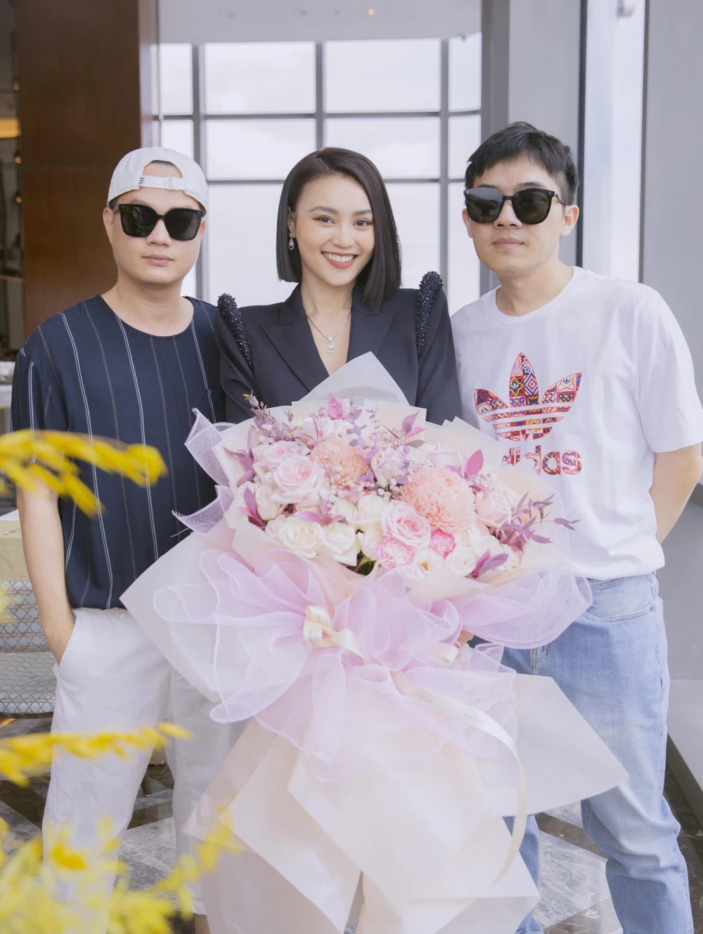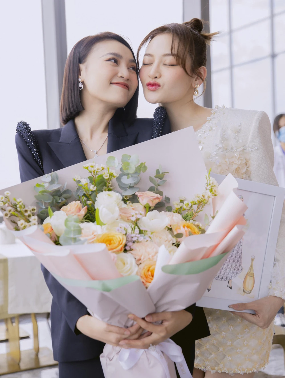 Lê Xuân Tiền bất ngờ xuất hiện ở phim trường, trao tặng bó hoa to mừng sinh nhật người tình màn ảnh.