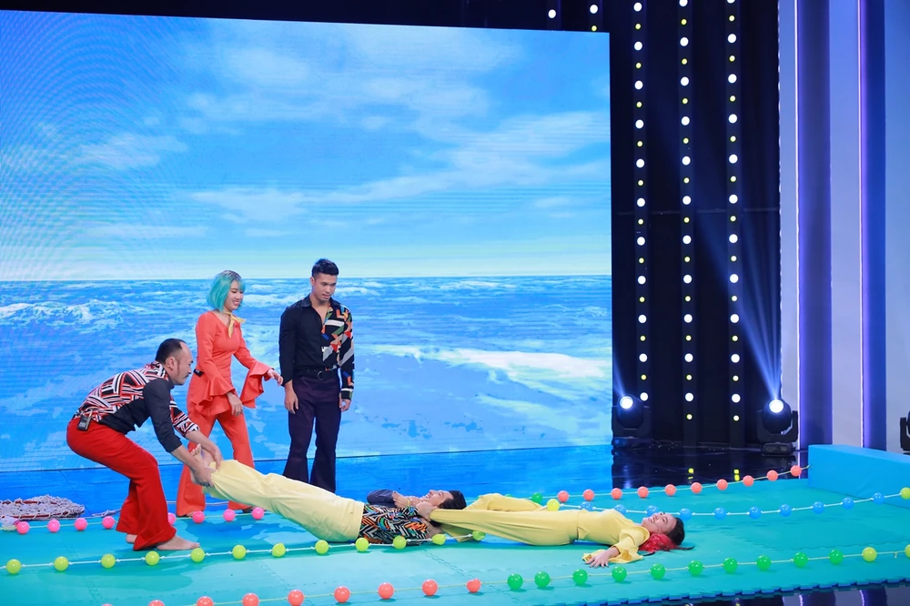 Sau nhiều pha xử lý cồng kềnh, cuối cùng cả ba nghệ sĩ cùng chiếc phao cũng phải chịu thua trước Tiến Luật.