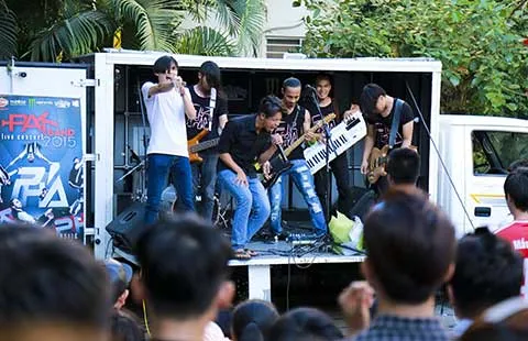 M-Truck Show của ca sĩ Phạm Anh Khoa được xem là một hình thức du ca khi ca sĩ này chọn đến với sinh viên 10 trường đại học trên địa bàn TP.HCM. Ảnh: Ban tổ chức cung cấp