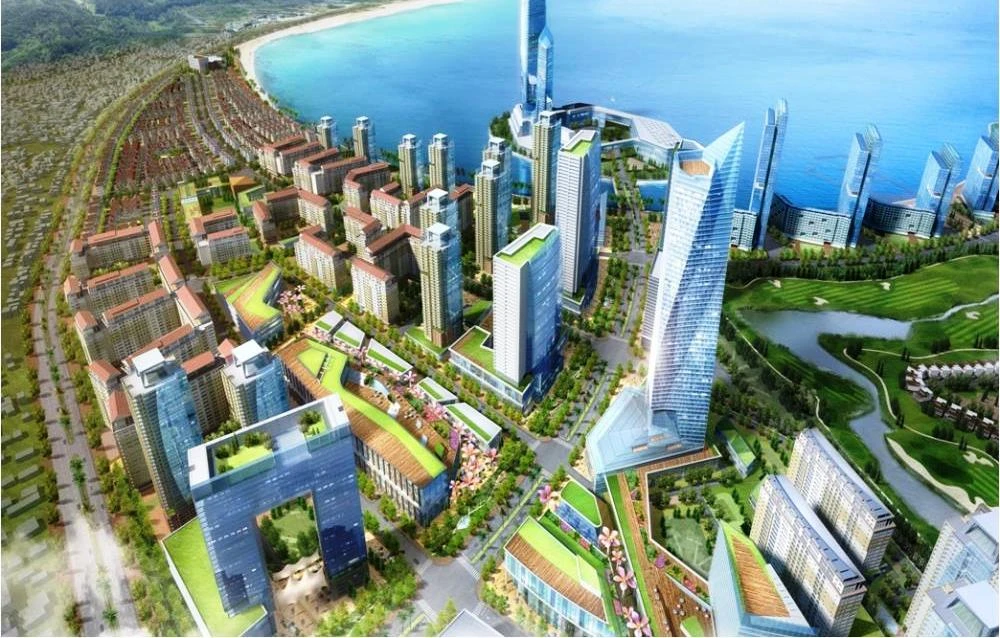 Khu đô thị quốc tế này là dự án phức hợp gồm nhiều hạng mục liên kết với nhau như các khu resort, sân golf 18 lỗ rộng 80 ha, khách sạn cao tầng, căn hộ cao cấp có đài quan sát dọc theo vịnh để ngắm cảnh Đà Nẵng từ trên cao, chung cư 33 tầng với 8.500 căn hộ, trường học quốc tế và câu lạc bộ biển.