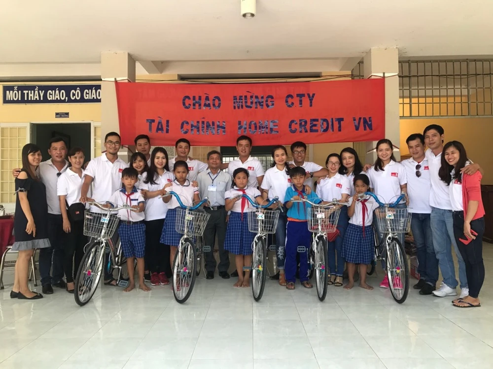 Chứng kiến tình trạng đó, nhân viên bộ phận Kinh doanh của Home Credit đã tự vận động và quyên góp được hơn 15 triệu đồng giúp đỡ cho 10 hộ dân khó khăn, có con nhỏ đang đến trường. Mỗi phần quà gồm 1 xe đạp, 1 ba lô và 30 quyển tập đã được trao tận tay các em.
