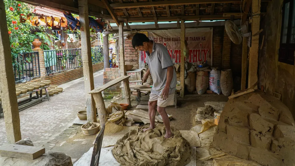 Nguyên liệu để làm tượng ở làng gốm Thanh Hà là đất sét được phù sa bồi đắp trên sông Thu Bồn.