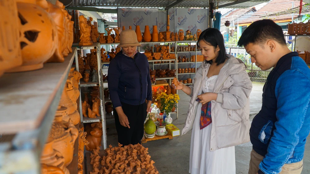 Năm nay, lượng khách đến với làng gốm Thanh Hà để tham quan và trải nghiệm giảm mạnh. Tuy nhiên, mặt hàng tượng gốm hình trâu vẫn đắt hàng và thu hút nhiều sự quan tâm của du khách và thương lái.