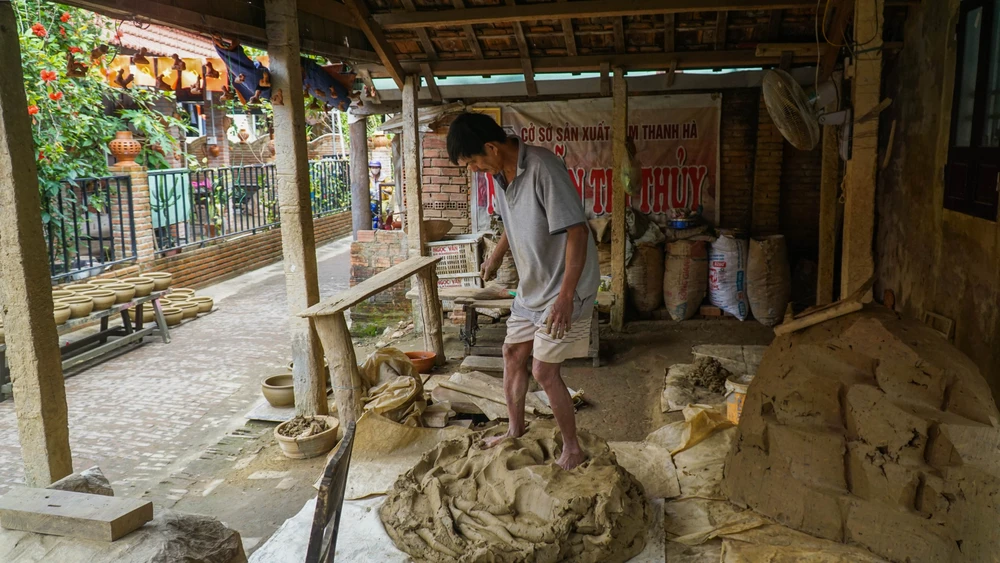 Do ảnh hưởng của dịch COVID-19, nhiều nhà xưởng gốm tại Thanh Hà phải tạm ngừng hoạt động. Gia đình ông Nguyễn Quốc Hoàng (ngụ phường Thanh Hà, TP Hội An) là một trong những hộ tại làng vẫn miệt mài giữ lửa nghề truyền thống.