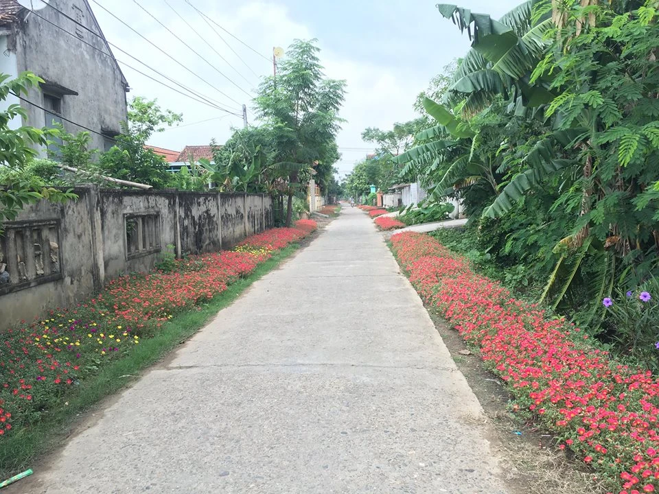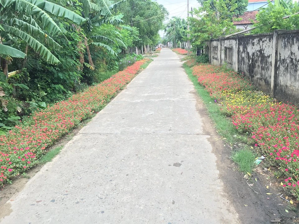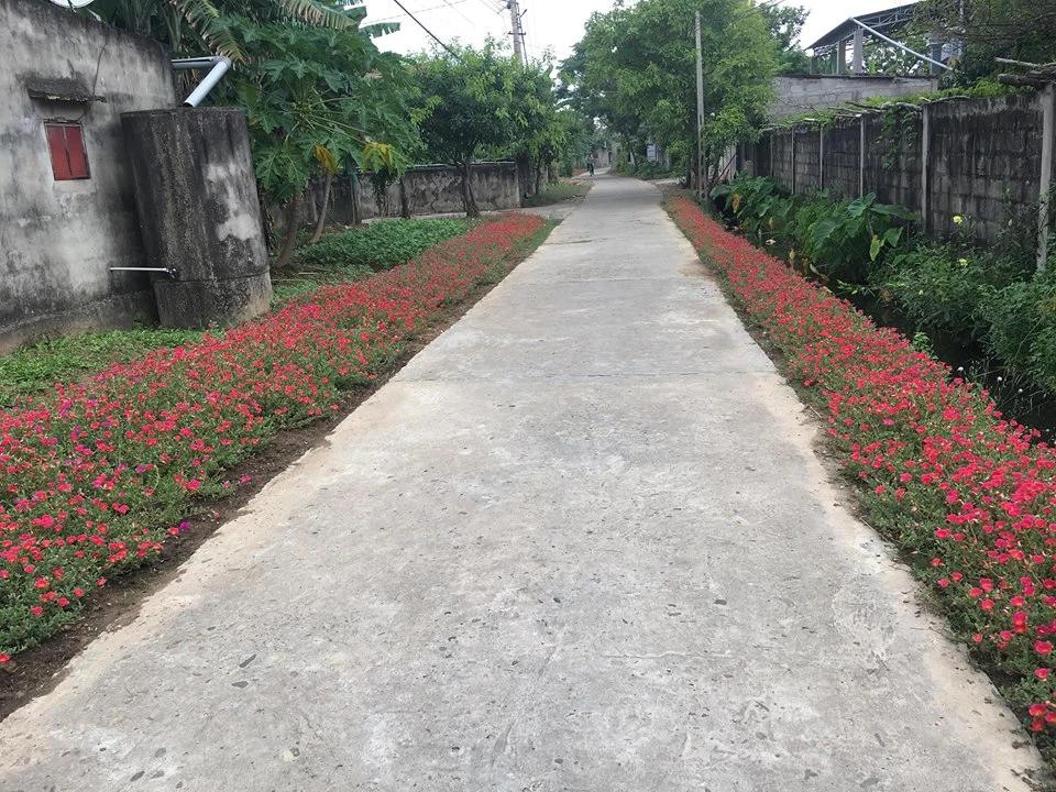 Những khoảng đất trống hai bên đường bê tông liên thôn được người dân tự tay trồng và chăm bón, quanh năm khoe sắc.
