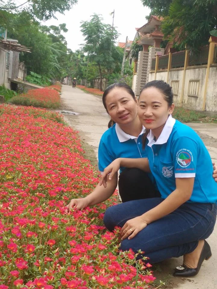 Các chị thường xuyên đi kiểm tra, làm cỏ để thảm hoa của làng thêm rực rỡ.