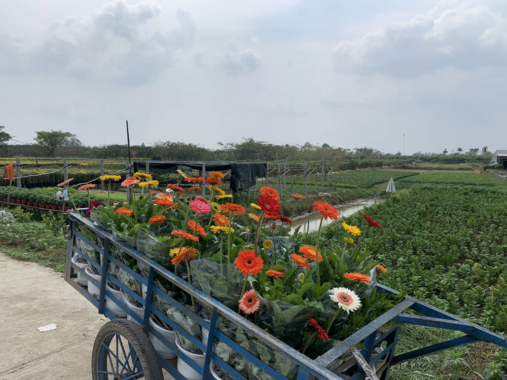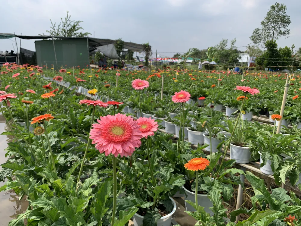 Trong khi đó, ông Bình, chủ vườn hoa trên đường Sa Nhiên phấn khởi hơn vì 10.000 chậu hoa đồng tiền đã được lái đặt mua toàn bộ, giá dao động trên dưới 95.000 đồng/chậu.