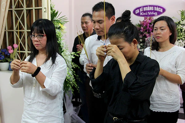 Ca sĩ Ánh Tuyết (bìa trái) cùng mọi người đến viếng nhạc sĩ Nguyễn Ánh 9. Ảnh: HOÀNG GIANG