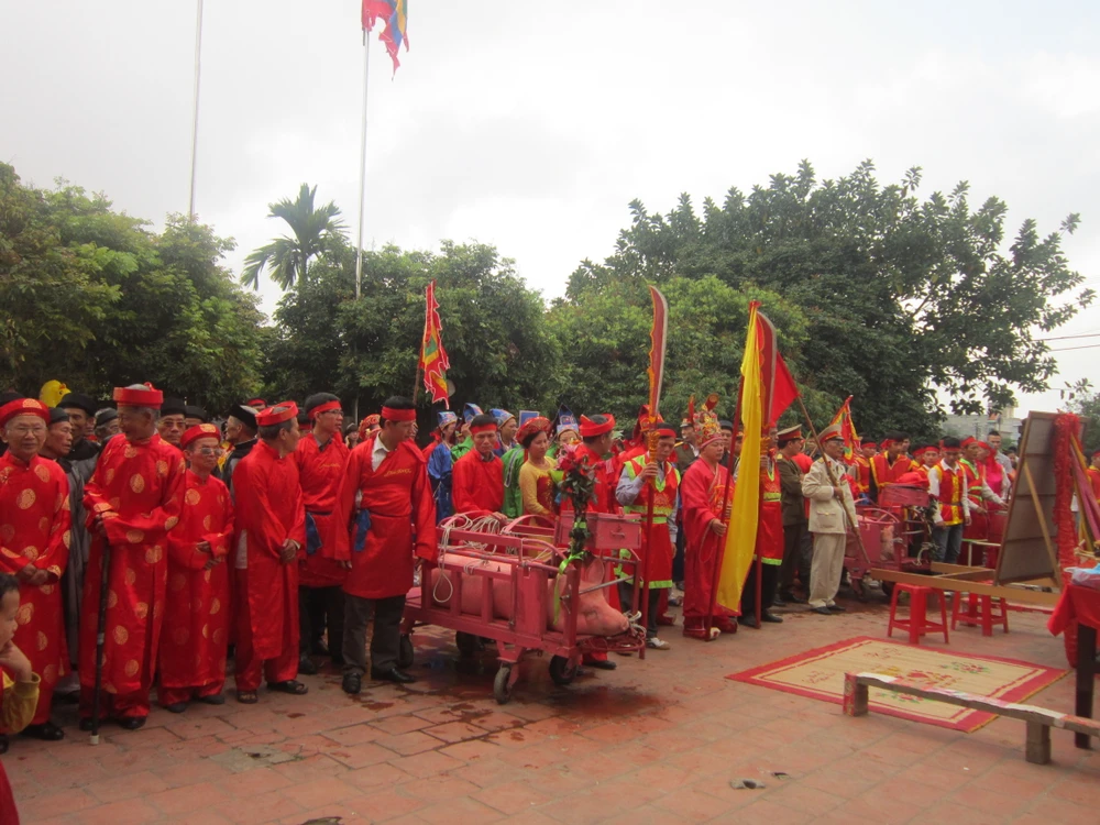 “Lúc đầu các cụ trong làng bày tỏ quan điểm vẫn là giữ nguyên nghi lễ chém lợn giữa sân đình như từ trước đến nay vẫn làm. Tuy nhiên, có ý kiến của lãnh đạo chính quyền tỉnh, thành phố, địa phương các cụ đã thống nhất không thực hiện nghi lễ chém lợn giữa sân đình nữa” – ông Lợi nói.