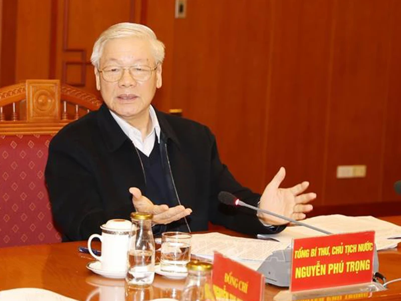 Tổng bí thư, Chủ tịch nước Nguyễn Phú Trọng phát biểu chỉ đạo tại cuộc họp sáng 7-2. Ảnh: TTXVN