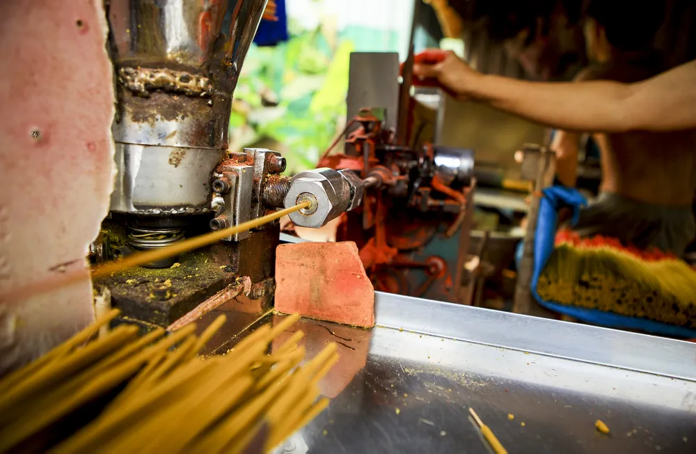 Nhờ máy móc, công đoạn se nhang được rút ngắn tối đa và thành phẩm là những nén nhang đồng đều, chất lượng hơn so với làm bằng thủ công.