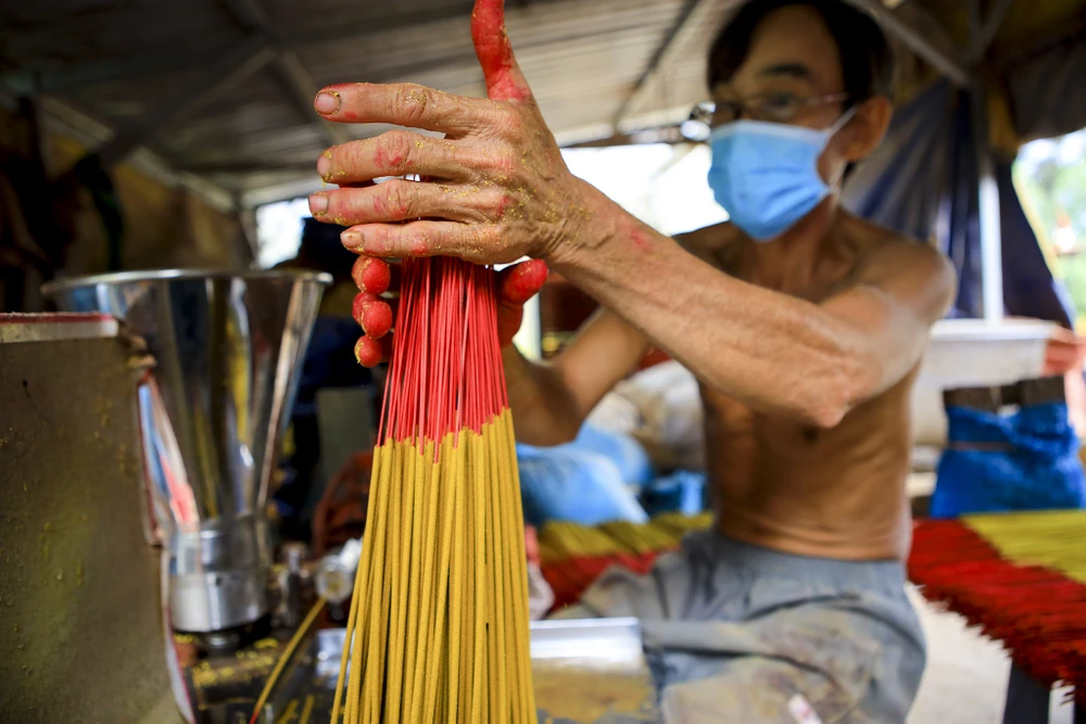 Năm 2022, người làm nhang ở xã Lê Minh Xuân phấn khởi vì làng nghề vẫn rộn ràng những ngày cuối năm, ai cũng chỉ mong được đón một cái Tết đủ đầy.
