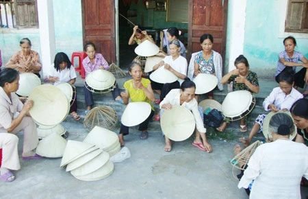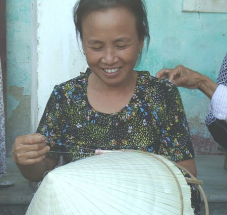 Cụ Nguyễn Thị Lân (82 tuổi), có thâm niên làm nghề đan nón đã hơn 70 năm, nhớ lại: “Lúc chưa tròn 10 tuổi, tui đã đan được nón giống như người lớn rồi. Hồi đó đói nên ai cũng phải cố mà làm, làm cả ngày, có lúc đến 2 giờ sáng để ngày mai có nón đem ra chợ bán lấy tiền đong gạo… Nghề làm nón đã trở thành công việc chính của tui gần hai phần ba thế kỷ rồi”.