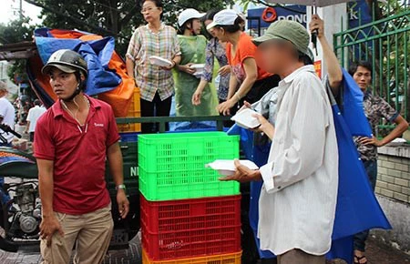 Ông Trần Đức Thành, quê Quảng Ngãi, lang thang ở góc đường Lý Thái Tổ, Điện Biên Phủ, cho biết: “Thường những ngày cuối tuần tôi nhận được rất nhiều phiếu thức ăn, còn những ngày giữa tuần thì ít lắm. Không lấy thì cũng ngại, sợ lần sau người ta không cho nữa nhưng nhiều lúc lại ăn không hết”.