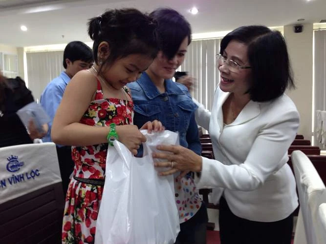 Tại buổi tiếp xúc, bà Nguyễn Thị Thu Hà, Phó Bí thư Thành ủy TP.HCM trao quà cho công nhân. Ảnh: P.ĐIỀN