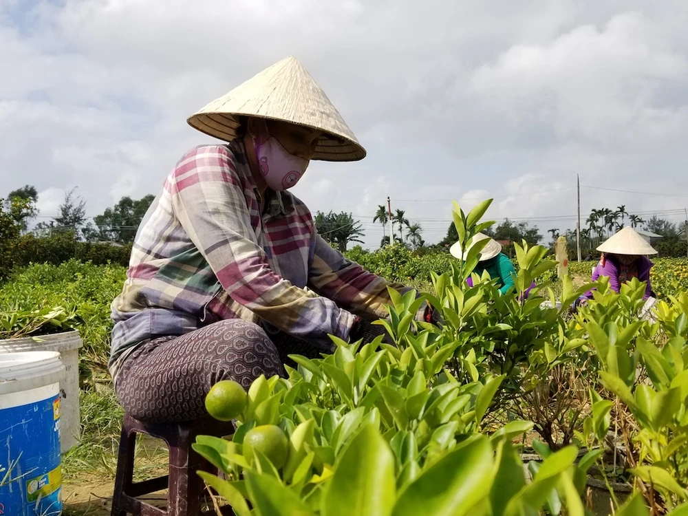 Người dân trồng quất ở Hội An năm nay thắng lớn. Ảnh: THANH NHẬT.