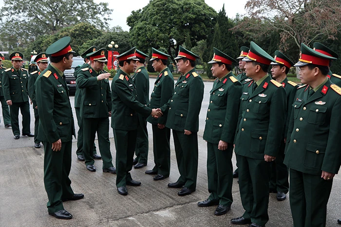 Trung tướng Nguyễn Tân Cương tại buổi thăm Bộ Chỉ huy quân sự tỉnh Lạng Sơn. Ảnh: MOD