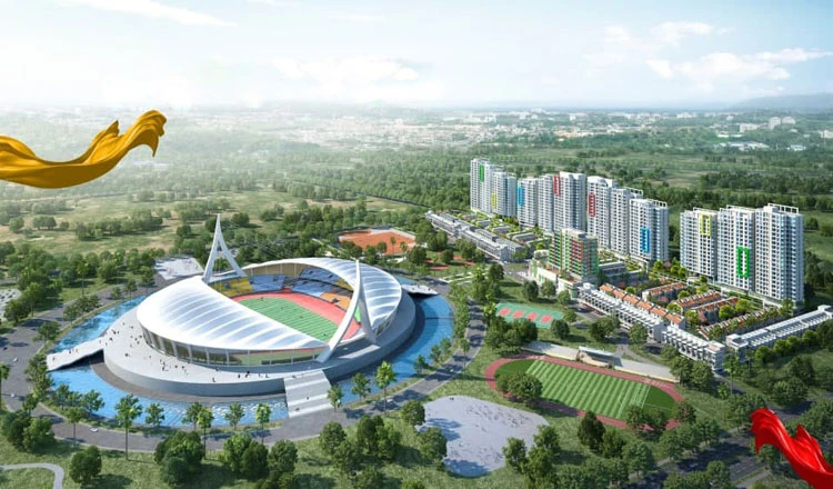 Phối cảnh toàn bộ khu tổ hợp thể thao Morodok và làng VĐV SEA Games 32. Ảnh: Khmer Times