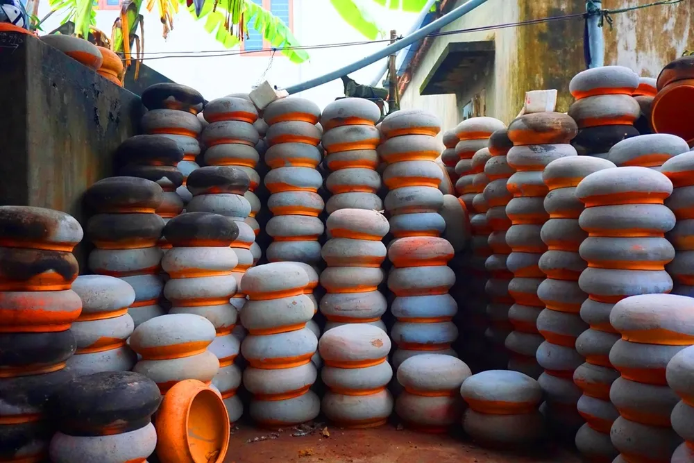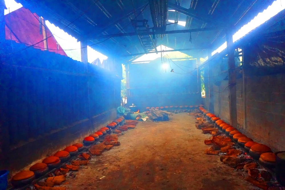 Mỗi dịp Tết, nhà ông Thế lại kho số lượng lớn lên đến hàng trăm niêu để phục vụ khách thập phương. Ảnh: Cù Hiền.