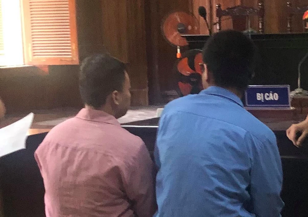 Hai bị cáo Quốc và Nghĩa khi tòa nghị án. Ảnh: HY