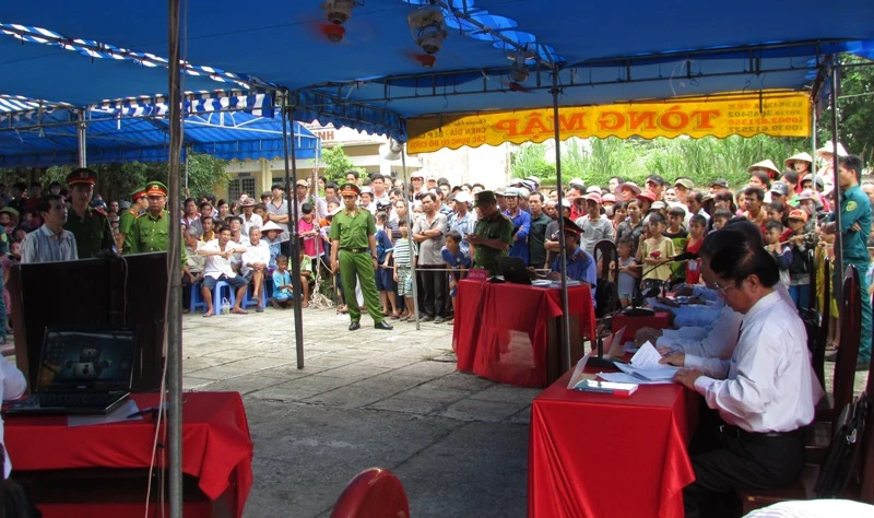 Hàng trăm người dân địa phương đã đến tham dự phiên tòa xử bị cáo Nguyễn Văn Mộng. Ảnh: N.NAM