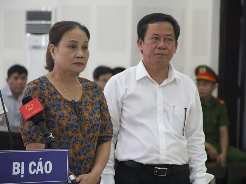 Vợ chồng bị cáo Trương Huy Liệu tại tòa. Ảnh: TÂM AN