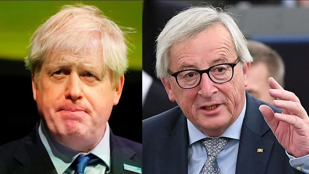 Thủ tướng Anh Johnson và Chủ tịch Hội đồng châu Âu Juncker. Ảnh: SKYNEWS