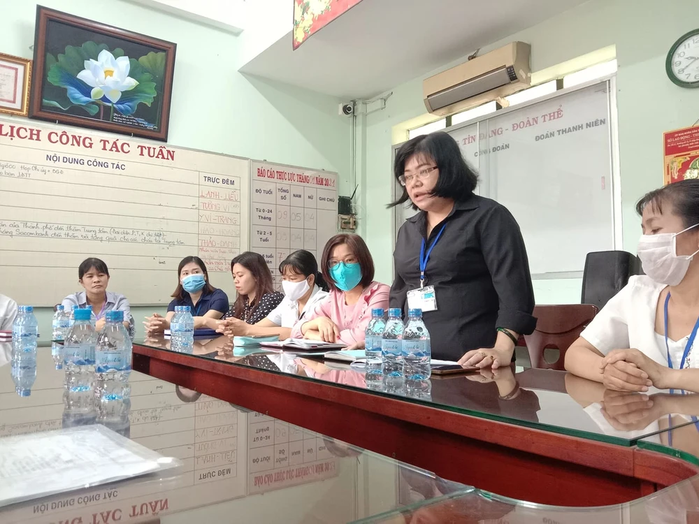 Bà Nguyễn Lê Ngọc Thu, Giám đốc Trung tâm nuôi dưỡng bảo trợ trẻ em Linh Xuân, phát biểu tại buổi đón đoàn. Ảnh: A.TUẤN