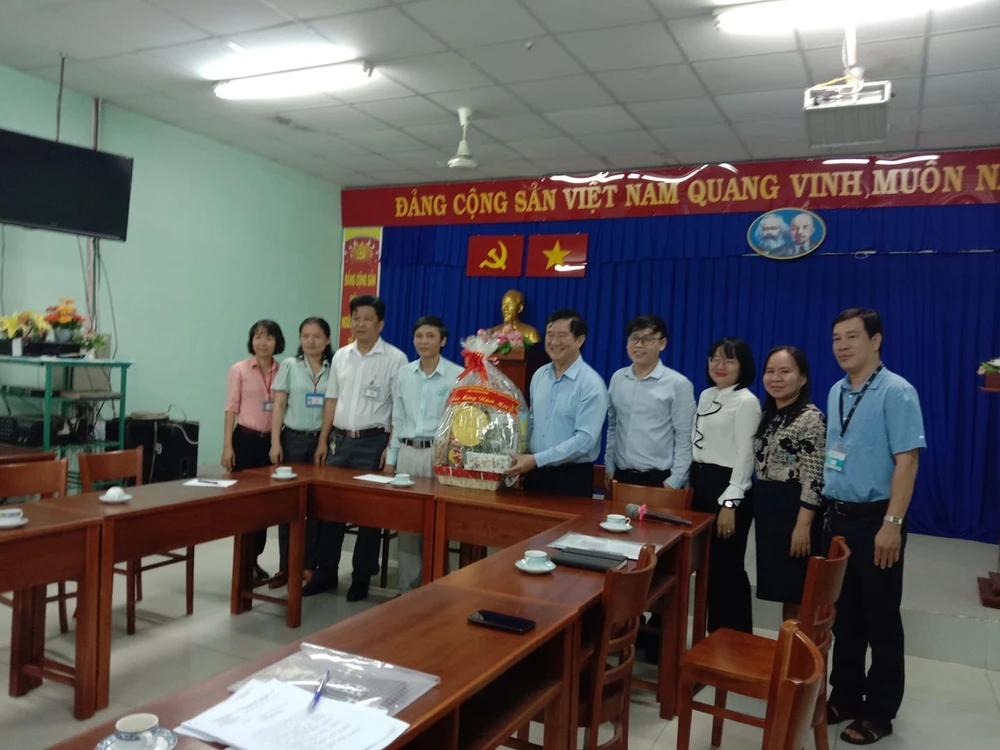 Đoàn tới thăm, tặng quà, chúc tết tập thể lãnh đạo, cán bộ, nhân viên Bệnh viện Nhân dân Gia Định. Ảnh: A.TUẤN