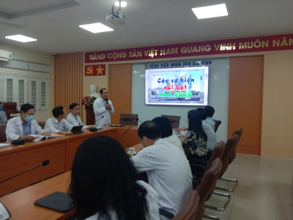 TS-BS Nguyễn Anh Dũng, Giám đốc BV Nhân dân Gia Định, nói về các sự kiện nổi bật trong năm của đơn vị. Ảnh: A.TUẤN