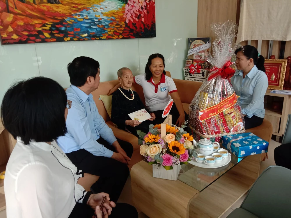 Tới thăm, chúc Tết Mẹ VNAH Trần Thị Nho (phường Thảo Điền, TP Thủ Đức), đoàn chúc mẹ sống lâu, sống khỏe, là tấm gương sáng về tinh thần cống hiến cho sự nghiệp cách mạng để con cháu noi theo. Tiếp đó, đoàn tới hộ ông Tất Văn Lộc (phường Bình Khánh) tặng quà và động viên vượt qua khó khăn.