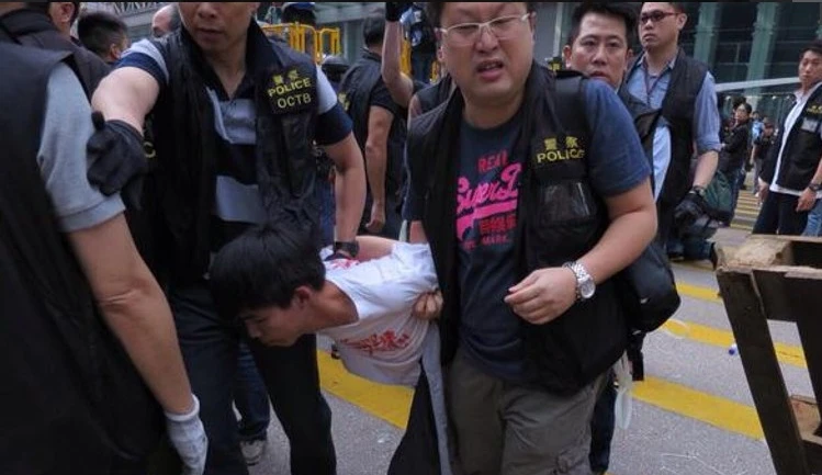 Ngày 15-10, đài truyền hình Hong Kong từng công bố một đoạn video được quay tại hiện trường quận Admiralty, cho thấy một nhóm người mặc thường phục, được cho là nhân viên an ninh đang tấn công xối xả vào một người biểu tình bị còng tay.