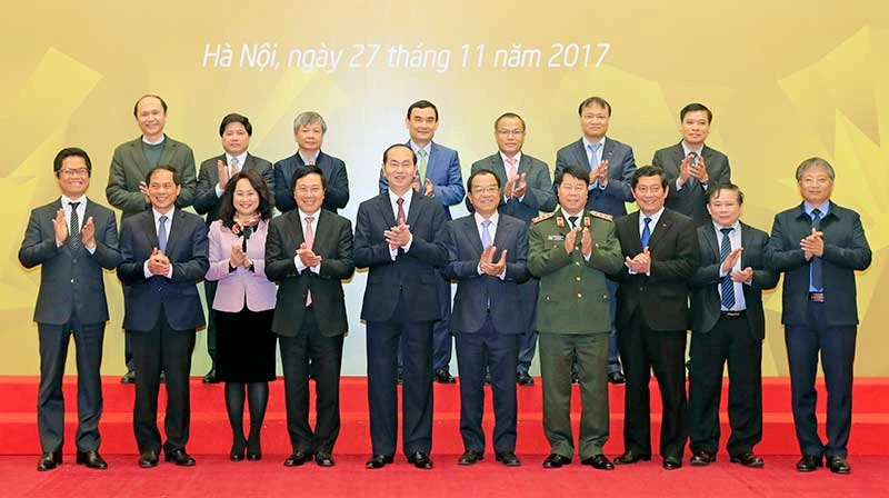 Chủ tịch nước Trần Đại Quang với các thành viên Ủy ban Quốc gia APEC Việt Nam 2017. Ảnh: TTXVN