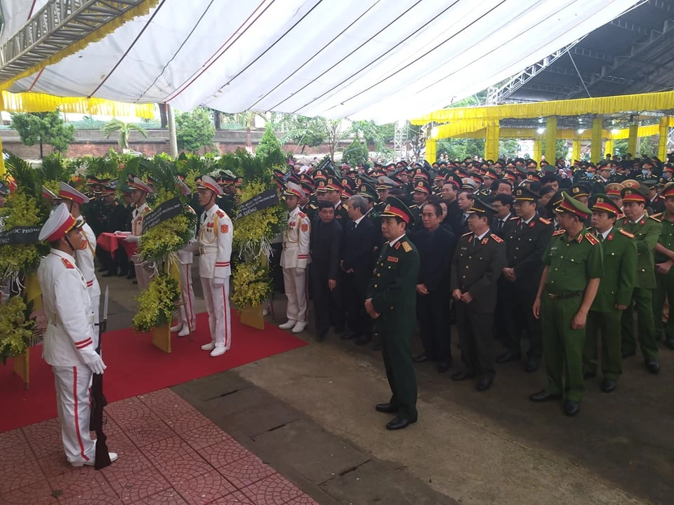 Phó Thủ tướng Trịnh Đình Dũng dẫn đầu Đoàn Đại biểu Đảng, Nhà nước, Chính phủ, Quốc hội; Thứ trưởng Bộ Quốc phòng Phan Văn Giang; Lãnh đạo tỉnh Thừa Thiên Huế... dẫn đầu các đoàn đại biểu tới thắp nhang trước 13 di ảnh và linh cữu được phủ Quốc kỳ.
